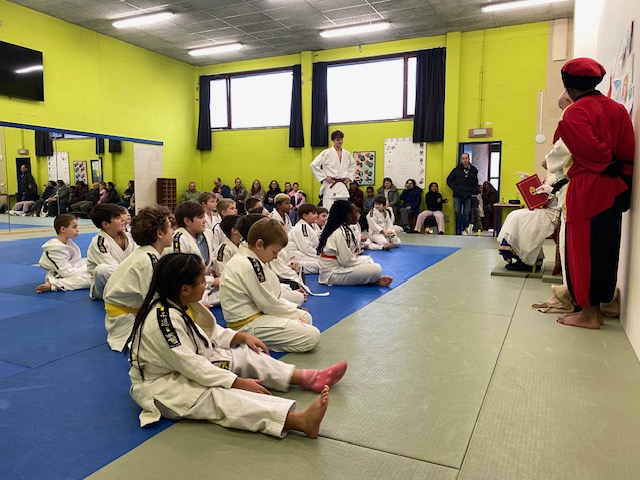 Ook dit jaar waren er geen stoute judoka’s. Na enkele demo’s van worpen en houdgrepen kregen alle aanwezige judoka’s een zoete verrassing. Ook de afgegeven tekeningen vielen in de smaak van de Sint en verdienden een extra beloning.