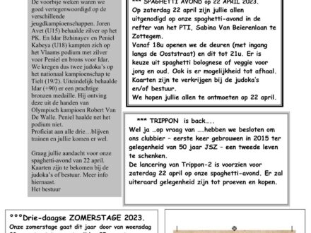 Hierbij ons clubblad Tatami Nieuws met alle nodige info rond de komende activiteiten ….veel leesplezier.