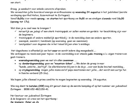 De start van het nieuwe seizoen komt steeds dichterbij. Op zaterdag 27 augustus gooien we de deuren van onze dojo in de Helios sporthal te Zottegem wagewijd open. De trainingsuren blijven ook dit jaar ongewijzigd….