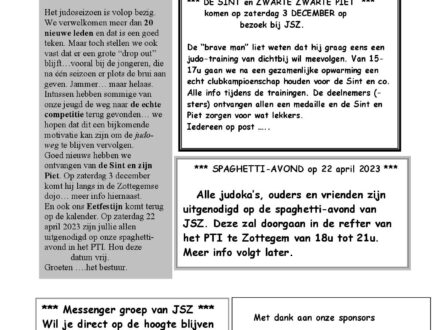 In “tatami-nieuws nr2” kan je de info vinden van onze komende activiteiten. Op 3 december komt de “Sint en zw. Piet” tijdens de trainingen van de jeugd op bezoek. We maken van de gelegenheid gebruik…