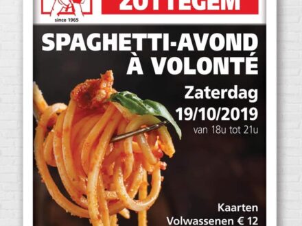 Graag nodigen wij alle judoka’s, familie en vrienden uit op onze eerste “Spaghetti-avond” op zaterdag 19 oktober in het PTI te Zottegem