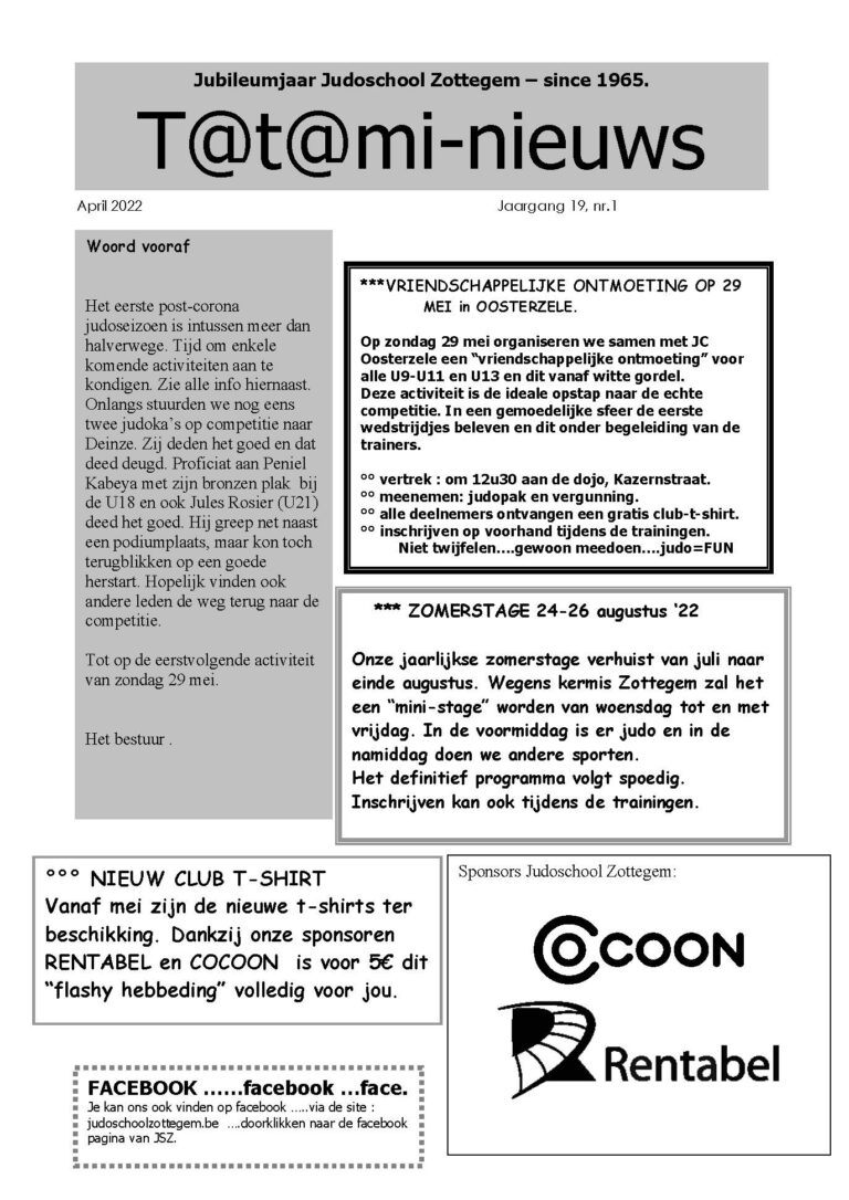 In ons “tatami-nieuws” kan je alle info vinden over de komende activiteiten van onze judoschool. Voor de jeugd is er op zondag 29 mei een “vriendschappelijke ontmoeting” met en in Oosterzele. Alle U9-U11 en U13…