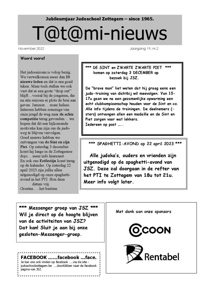 In “tatami-nieuws nr2” kan je de info vinden van onze komende activiteiten. Op 3 december komt de “Sint en zw. Piet” tijdens de trainingen van de jeugd op bezoek. We maken van de gelegenheid gebruik…